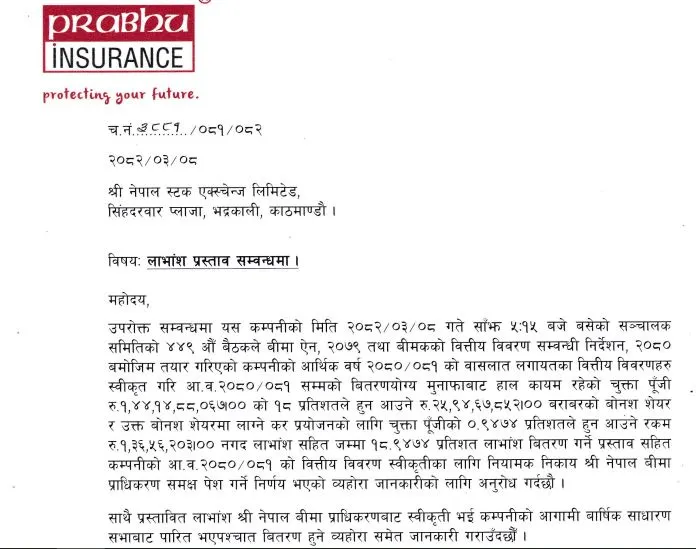 काठमाडौं । प्रभु इन्स्योरेन्स लिमिटेडले आर्थिक वर्ष २०८०/८१ को लाभांश घोषणा गरेको छ ।