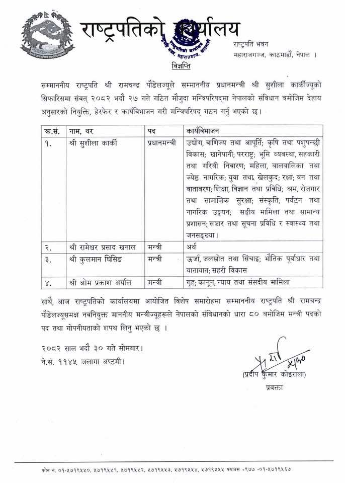 राष्ट्रपति पौडेलले अन्तरिम सरकारका प्रधानमन्त्री सुशीला कार्कीको सिफारिसमा उहाँ आइतबार साँझ मन्त्री बन्नुभएको हो । उहाँले ऊर्जा जलस्रोत तथा सिँचाइ, भौतिक पूर्वाधार तथा यातायात र सहरी विकास मन्त्रालयको जिम्मेवारी पाउनुभएको छ।