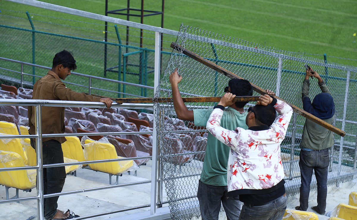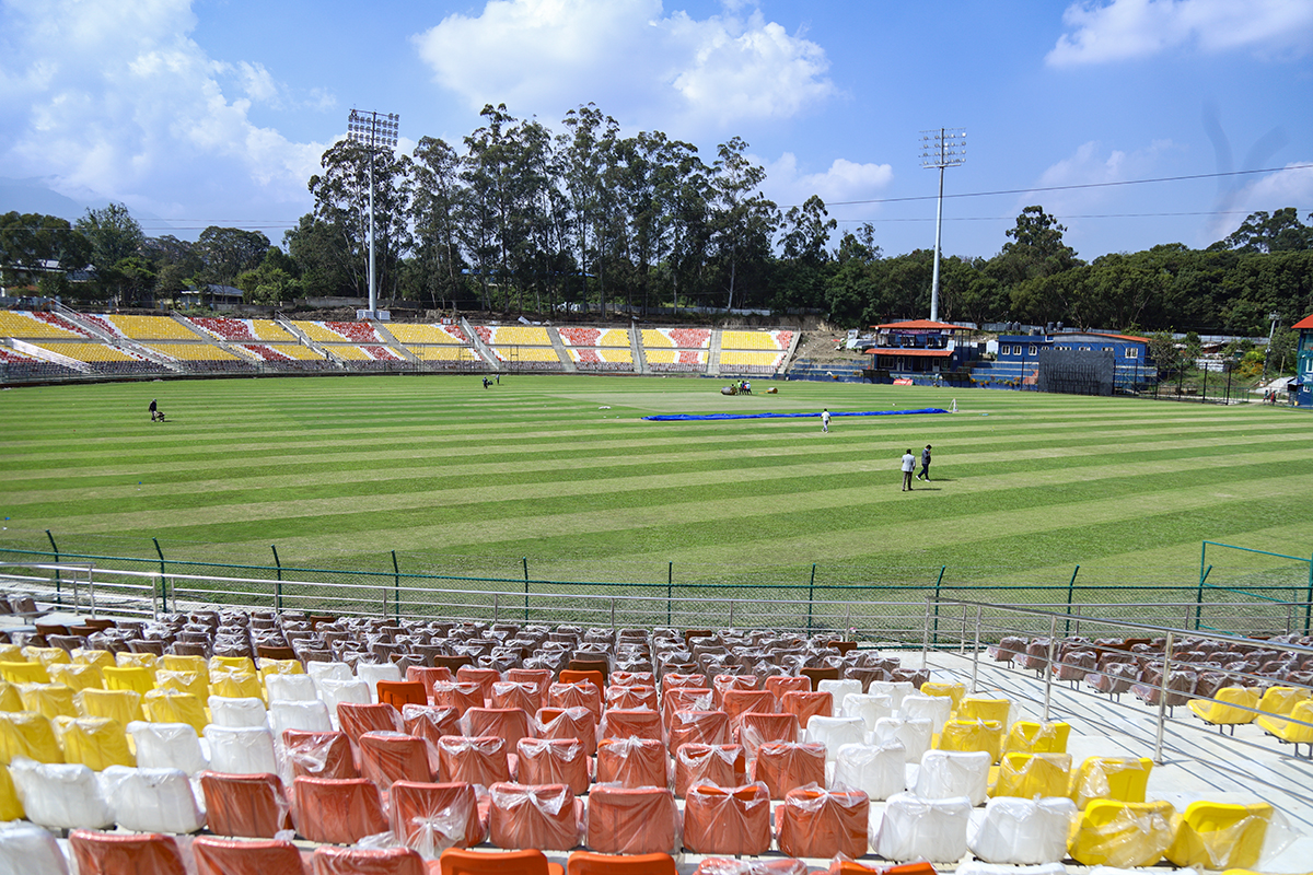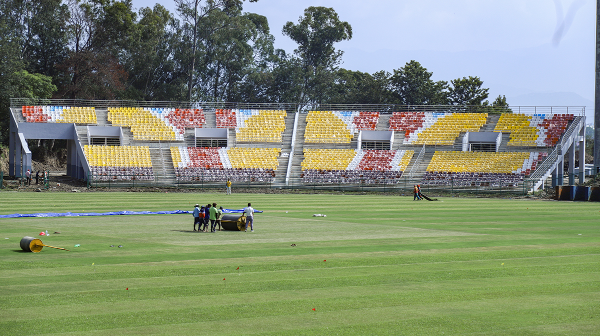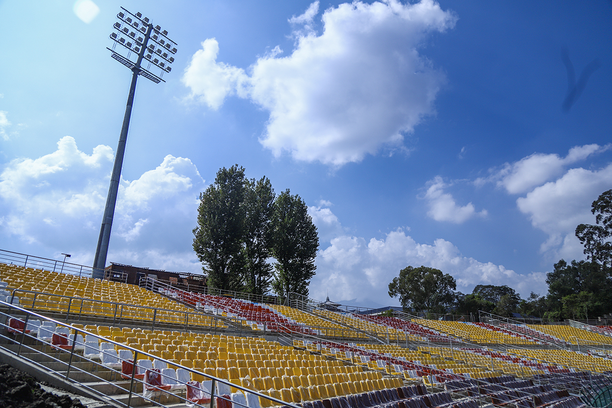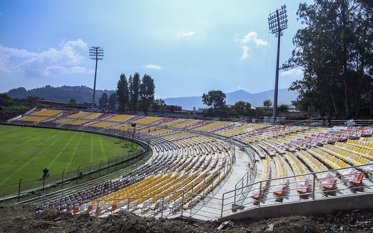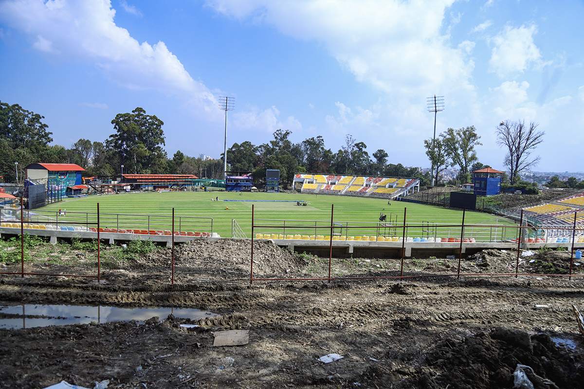 डेढ वर्षदेखि निर्माण कार्य सुरु भएको मैदान परिसरको प्यारापिटमा सिट राख्ने काम सकिएको छ । अहिले फ्लडलाइट जडान, मैदानको सरसफाइ र क्रिज पेल्ने काम धमाधम भइरहेको छ । त्यस्तै तार जाली लगाउने र पार्किङ बनाउने काम भइरहेको छ ।